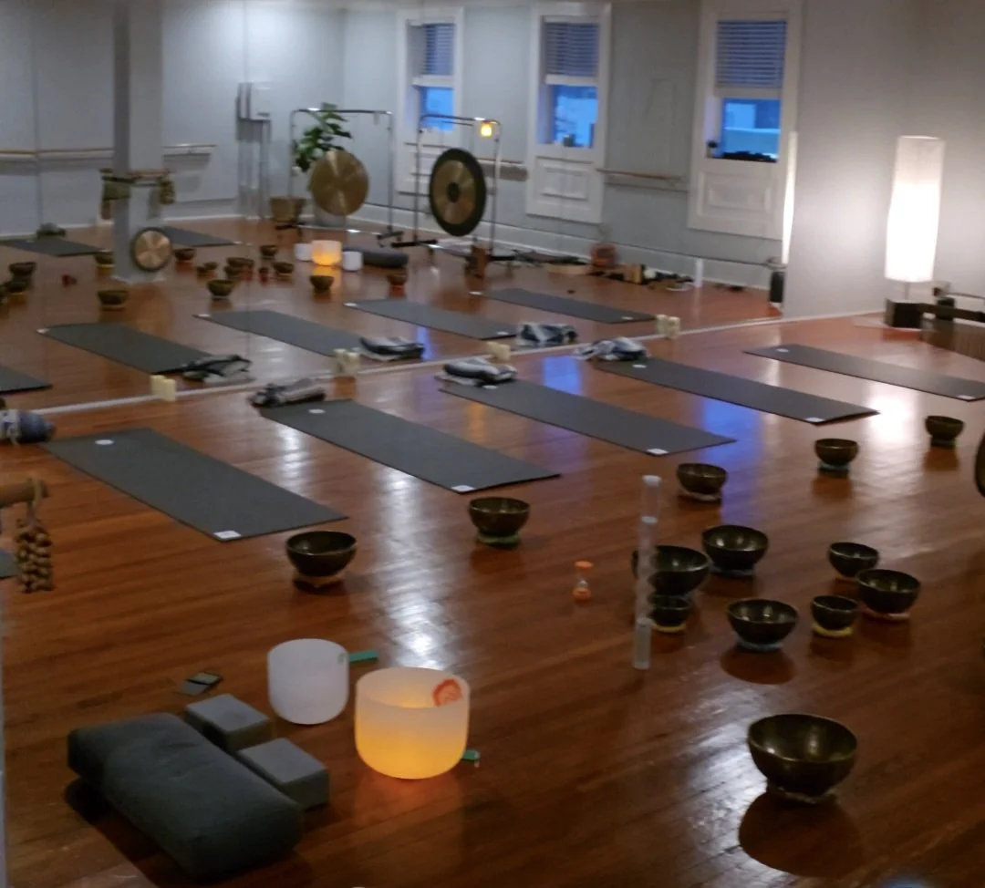 A fully immersive sound meditation designed to support relaxation, mental clarity, and nervous system restoration within a large group setting.